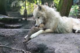 Dit is de poolwolf, deze wolven leven in Canada, Groenland en Alaska. Het hele land is bedekt met sneeuw en ijs. Meestal is het hier rond de -50, maar op hele koude dagen kan het hier wel -100 worden. De welpen worden meestal in mei of juni geboren.